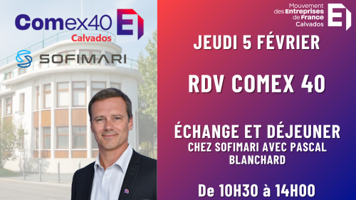 AGENDA Posté le 9 décembre 2025 à 15h51 JEUDI 5 FÉVRIER : RDV COMEX40 RDV COMEX40 Échange avec PASCAL BLANCHARD chez SOFIMARI, suivi d'un déjeuner. Horaires : 10H30 à 14H00