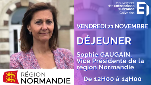 AGENDA Posté le 7 octobre 2025 à 15h55 VENDREDI 21 NOVEMBRE : DÉJEUNER DÉJEUNER AVEC SOPHIE GAUGAIN, VICE PRÉSIDENTE DE LA RÉGION NORMANDIE Horaires : 12H00 à 14H00 Lieu : Sequence Restaurant, 6 Rue du 11 Novembre 14000 Caen
